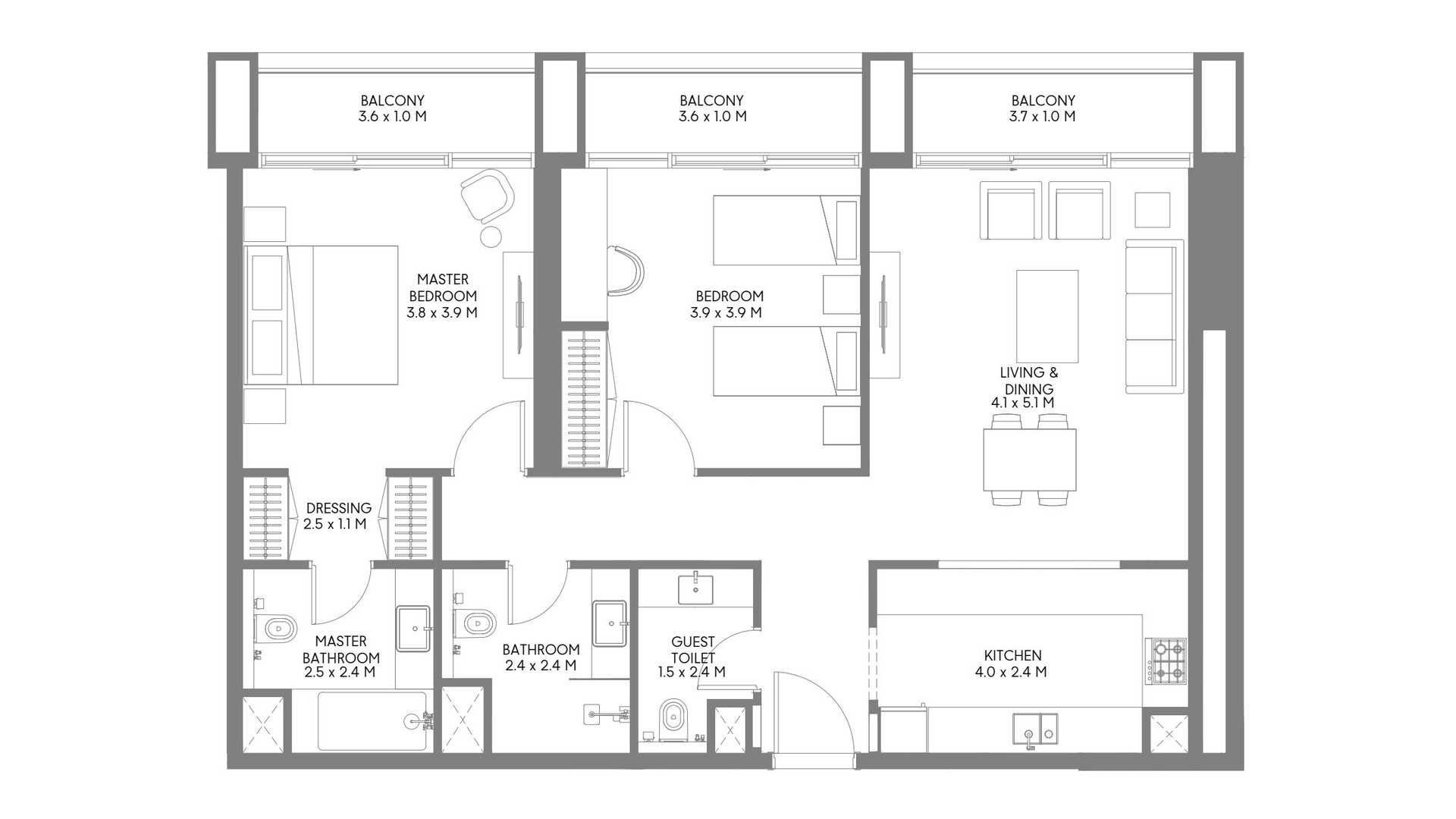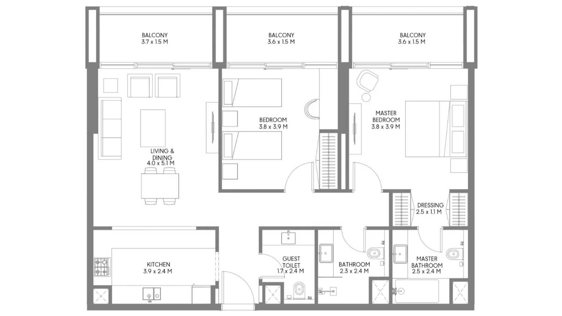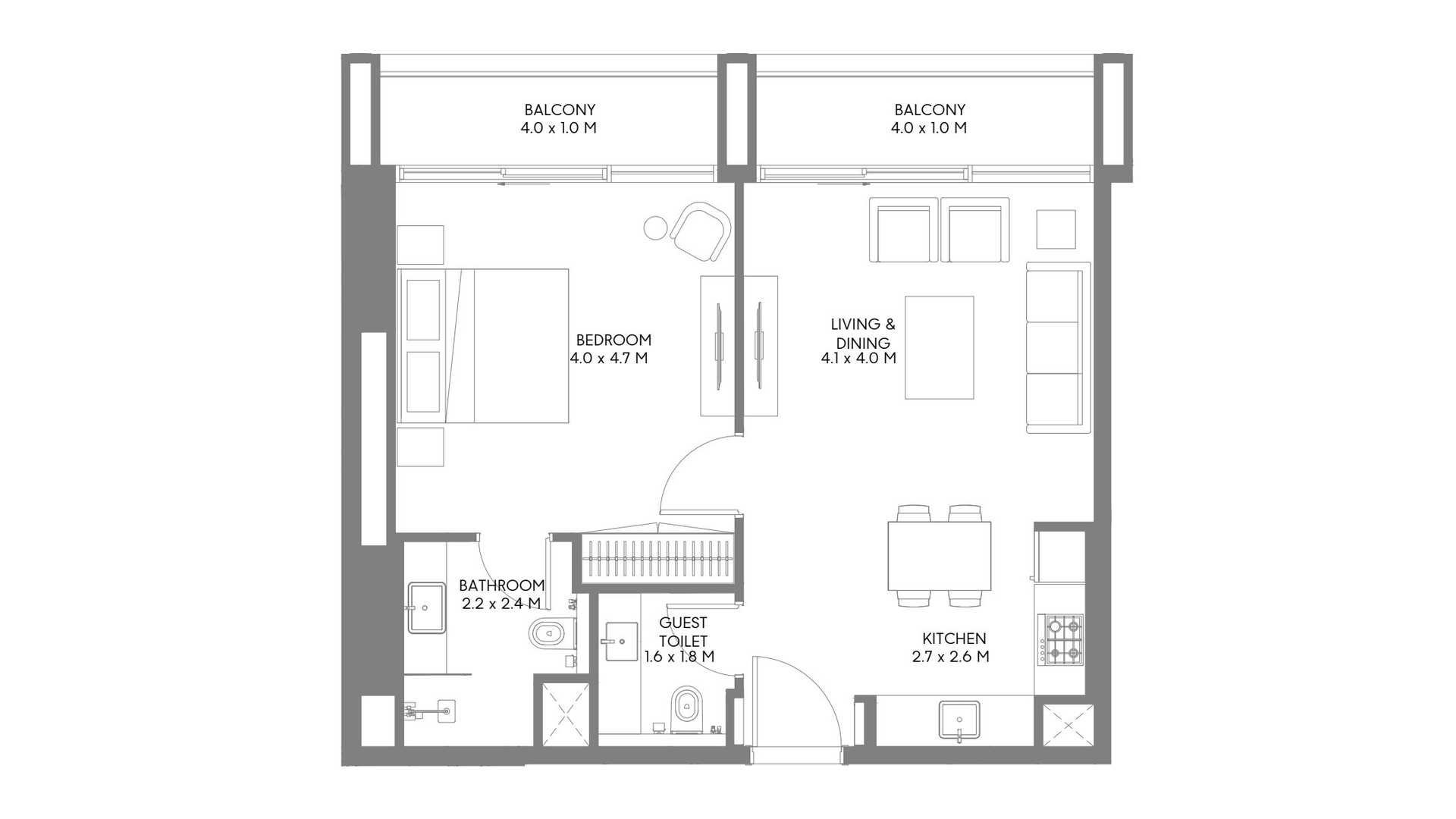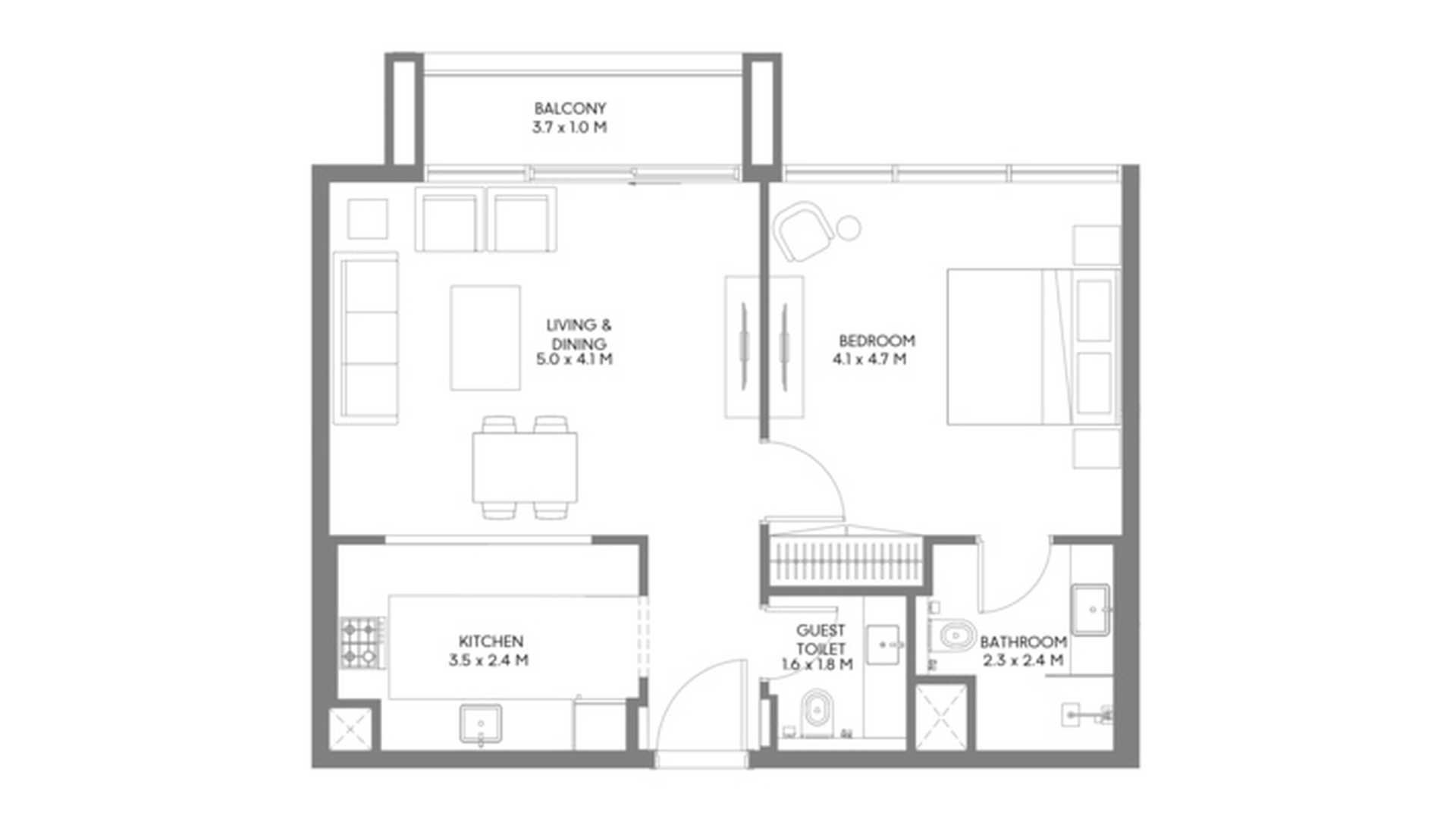 1 غرف نوم شقة مخطط الطابق في Jenna 1 No. 155117