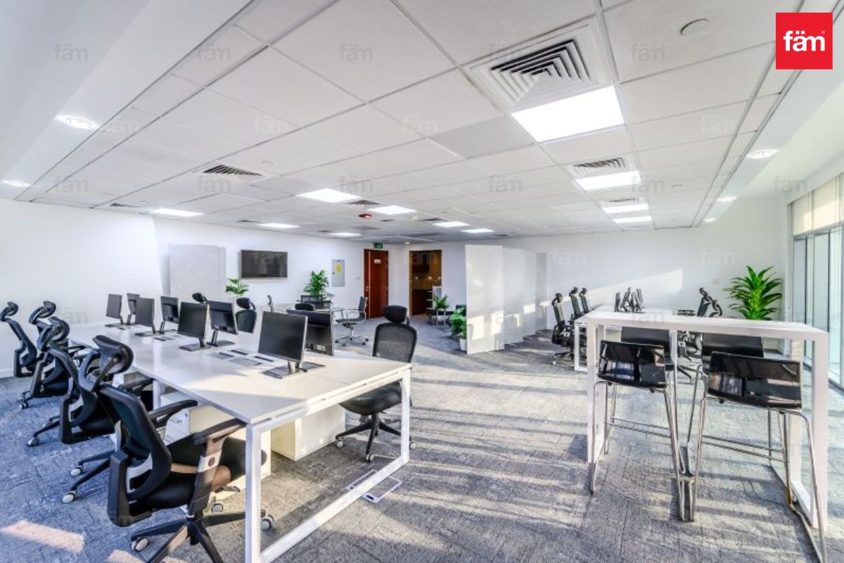 fam Properties is proud to present this fitted and furnished corner office in the prestigious Tiffany Tower, located in Cluster W, Jumeirah Lake Towers.This 1,121 sq. ft office features floor-to-ceiling windows, offering abundant natural light and vibrant views across JLT. The space includes an open-plan working area, private pantry and washroom, and a prime location making it ideal for a ready-to-move-in business setup.