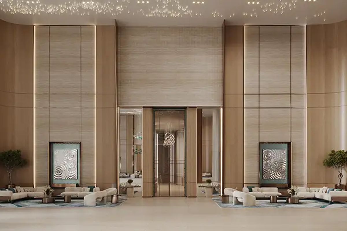 Designed as an immersive lifestyle sanctuary, integrates refined materials such as polished marble, natural oak wood, and brushed brass accents.