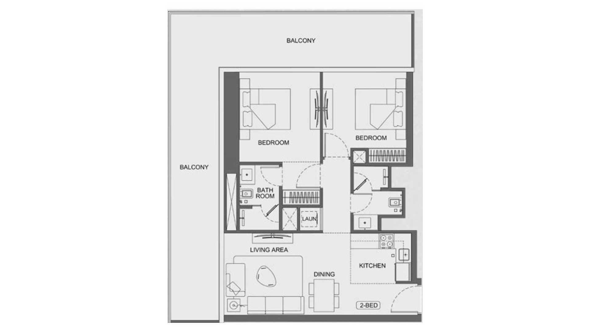 2 bedrooms Apartment floor plan in Binghatti Titania No. 136191