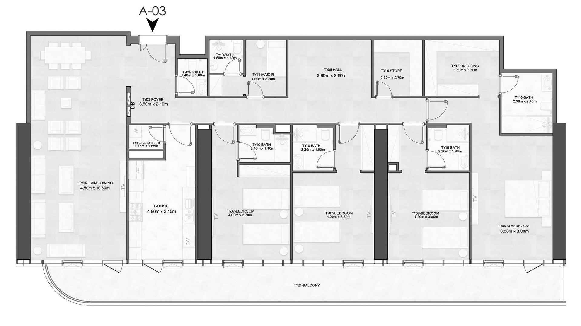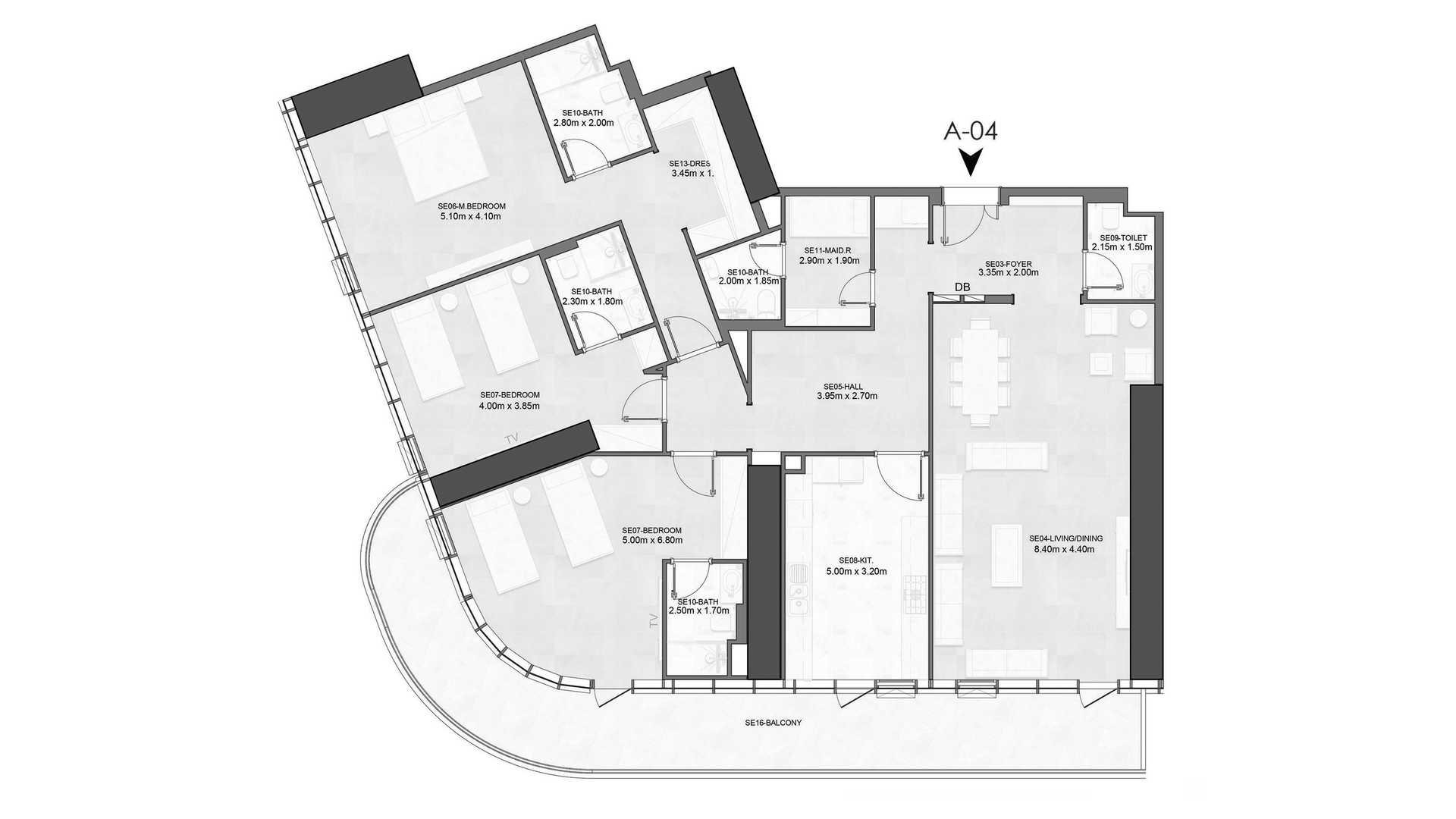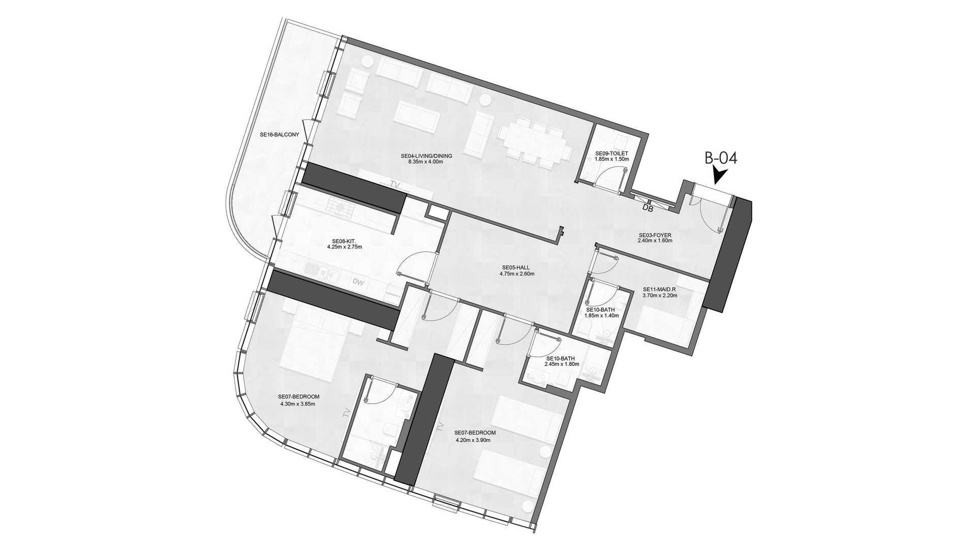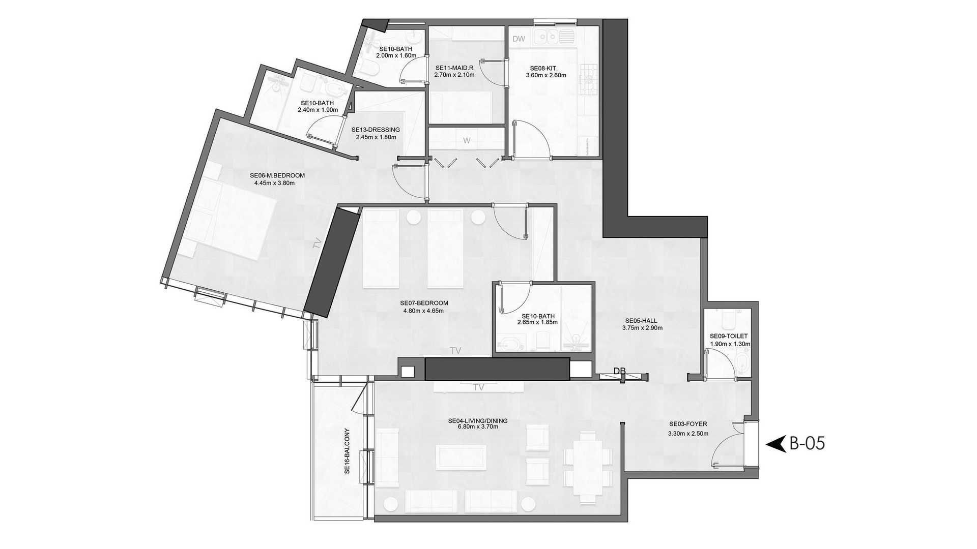 2 bedrooms Apartment floor plan in Joud Tower No. 155123