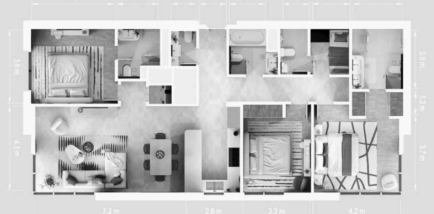 3 bedrooms Apartment floor plan «3BR-7» in ROSSO BAY RESIDENCES