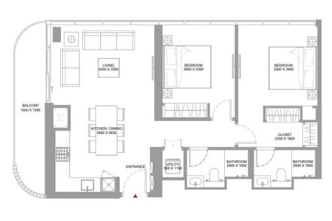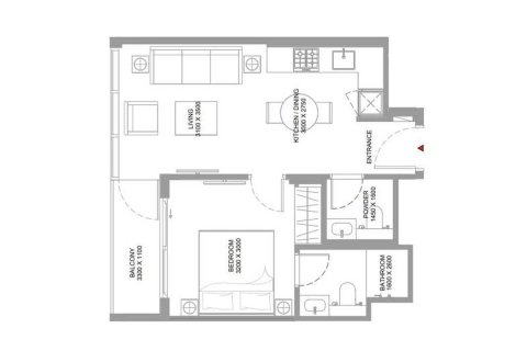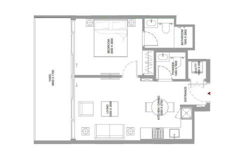 Планировка Квартиры с 1 спальней в ЖК Pearlside Marina Residences № 107652