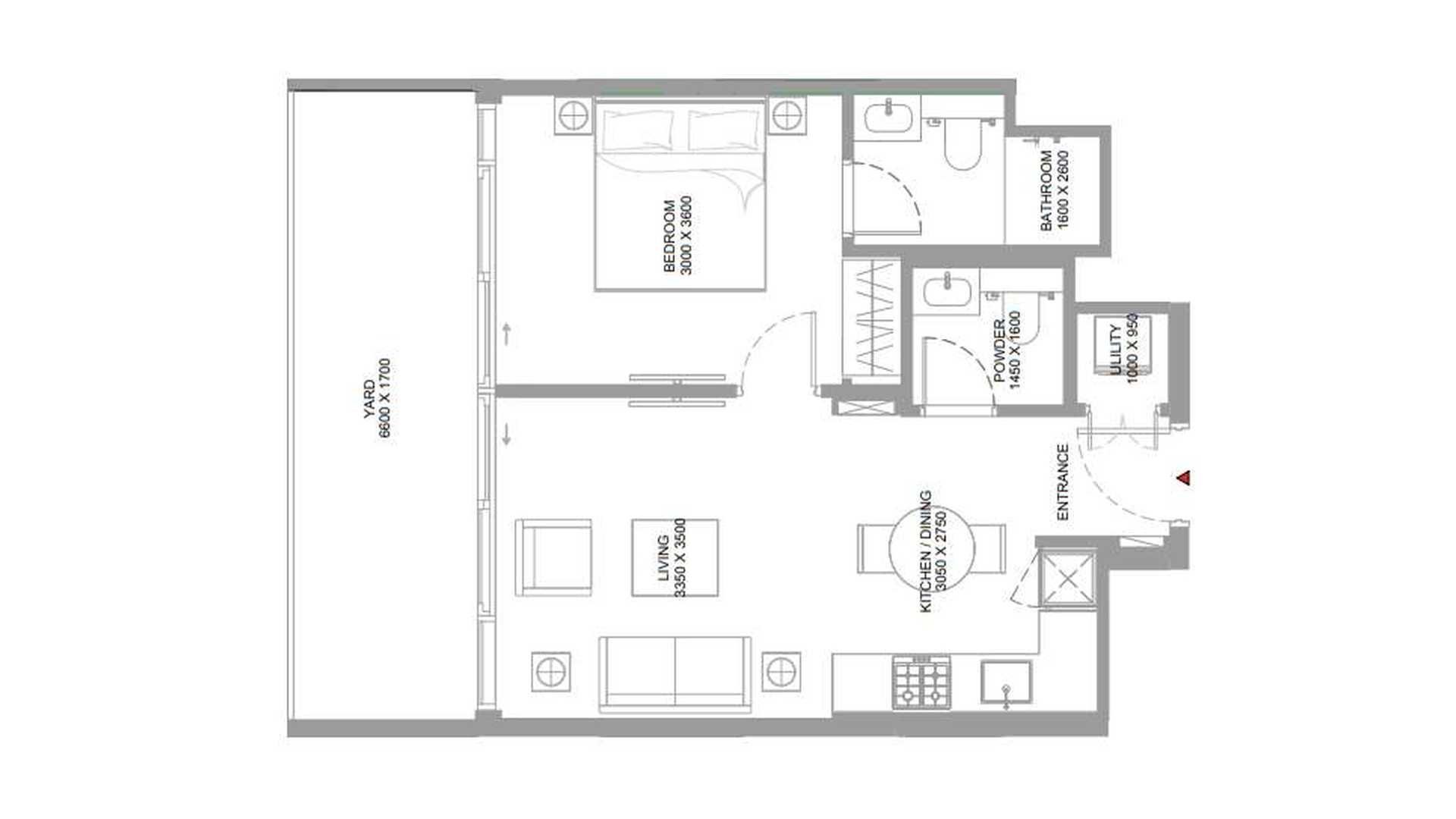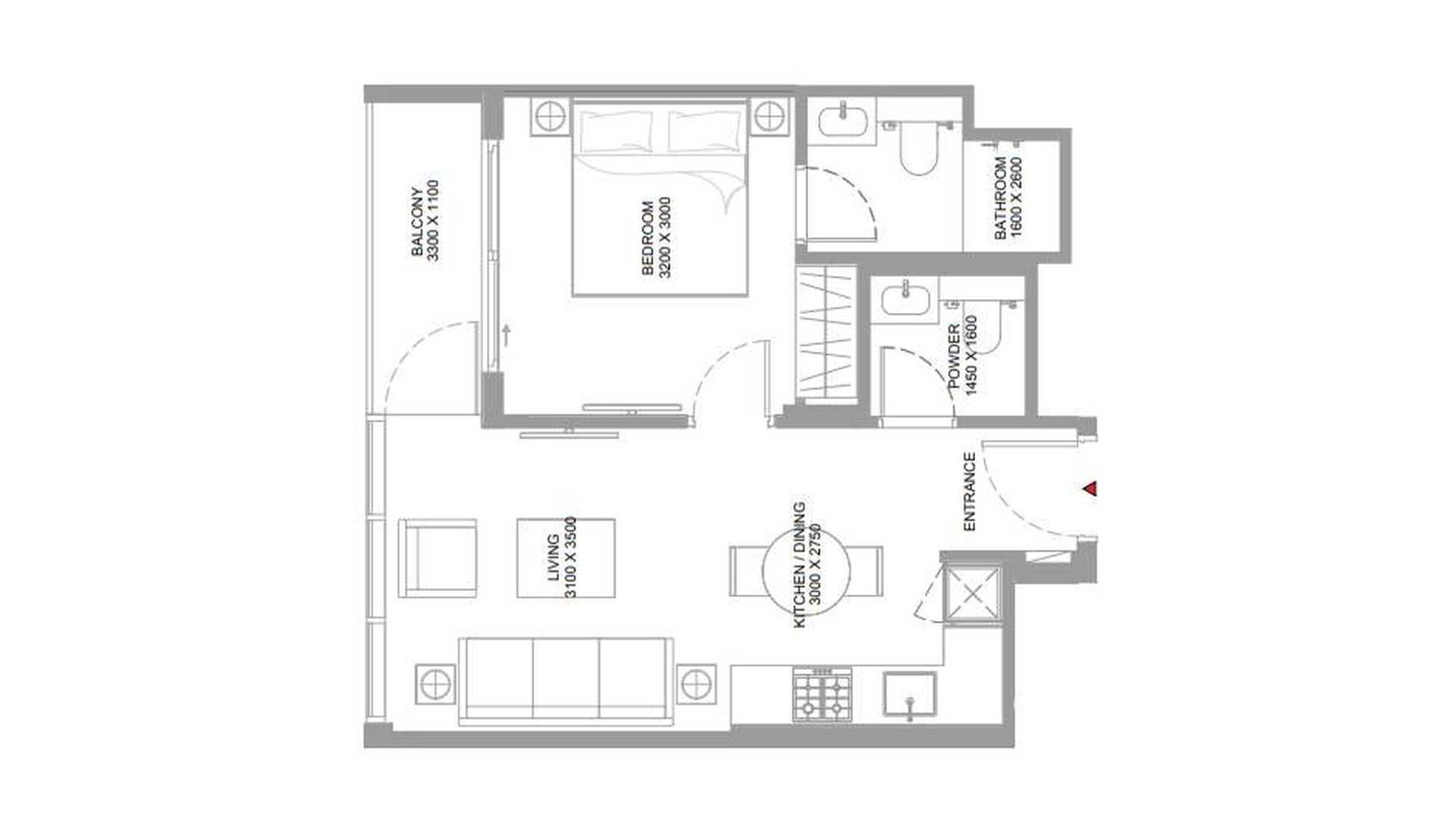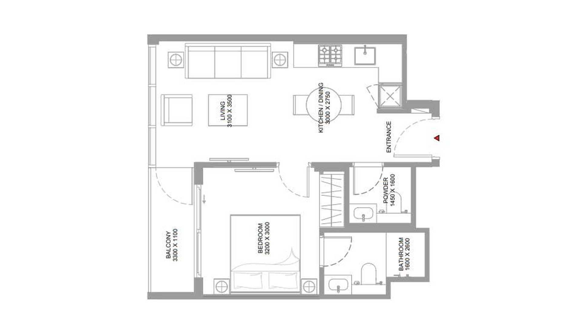 Планировка Квартиры с 1 спальней в ЖК Pearlside Marina Residences № 107652