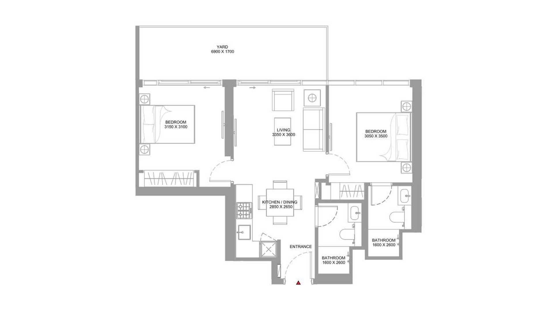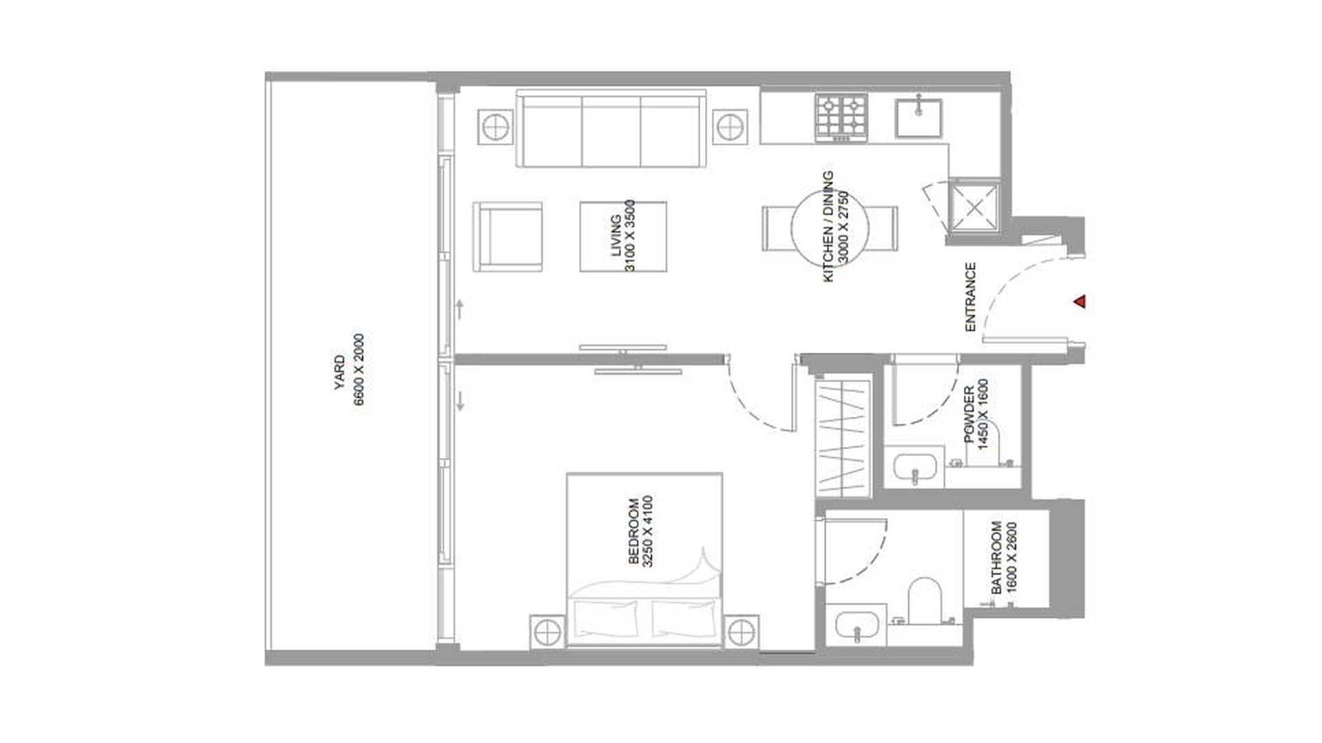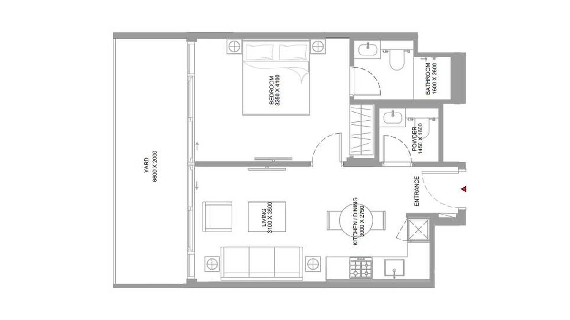 Планировка Квартиры с 1 спальней в ЖК Pearlside Marina Residences № 107652