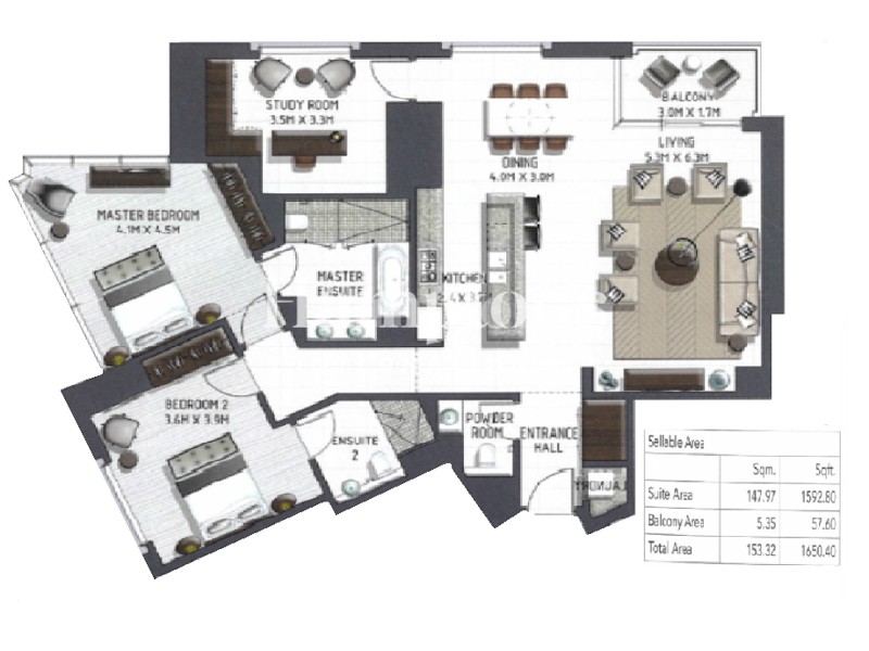 Квартира с 2 спальнями №135250