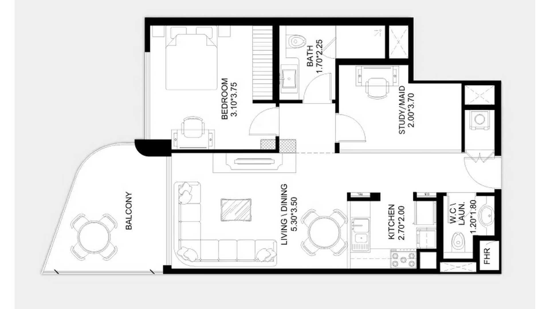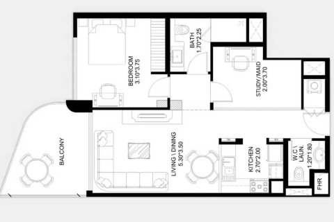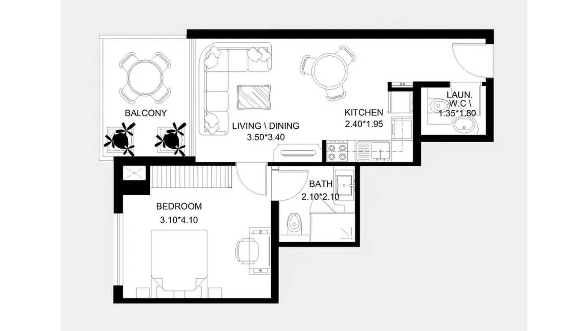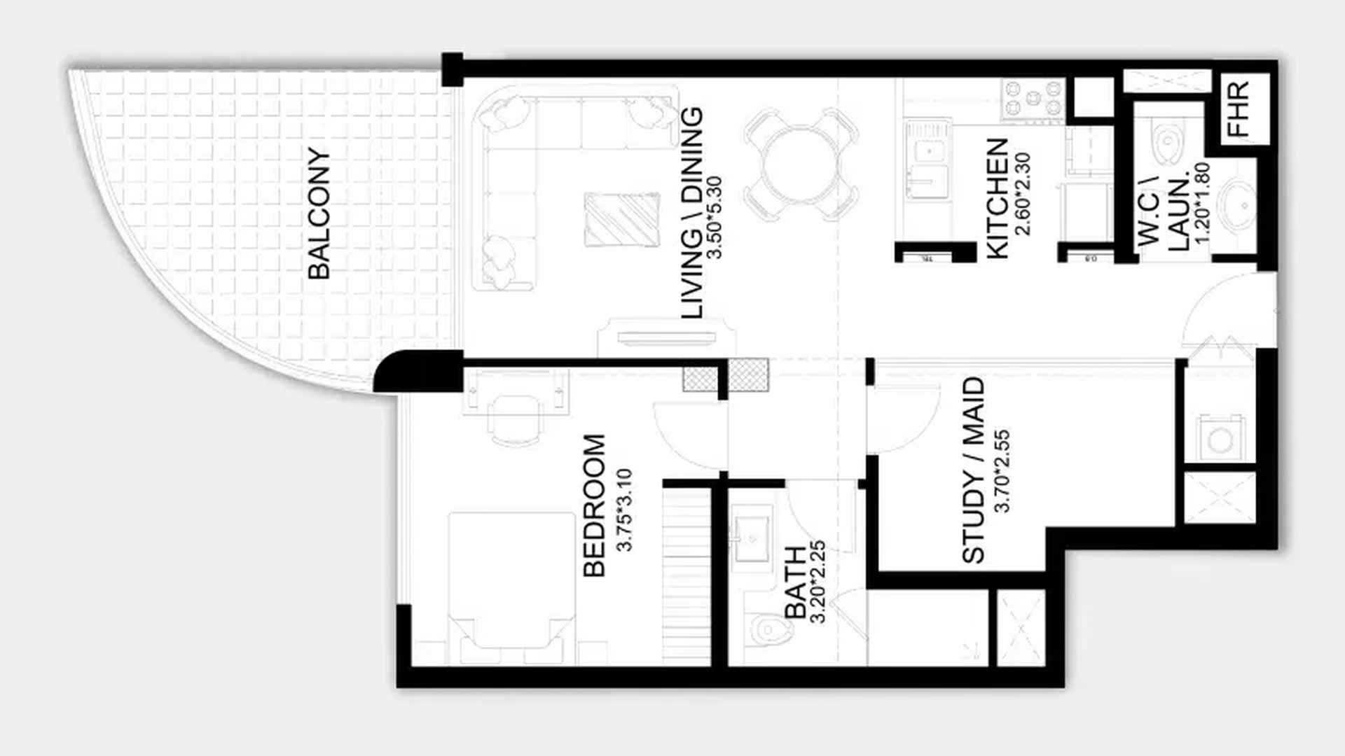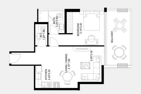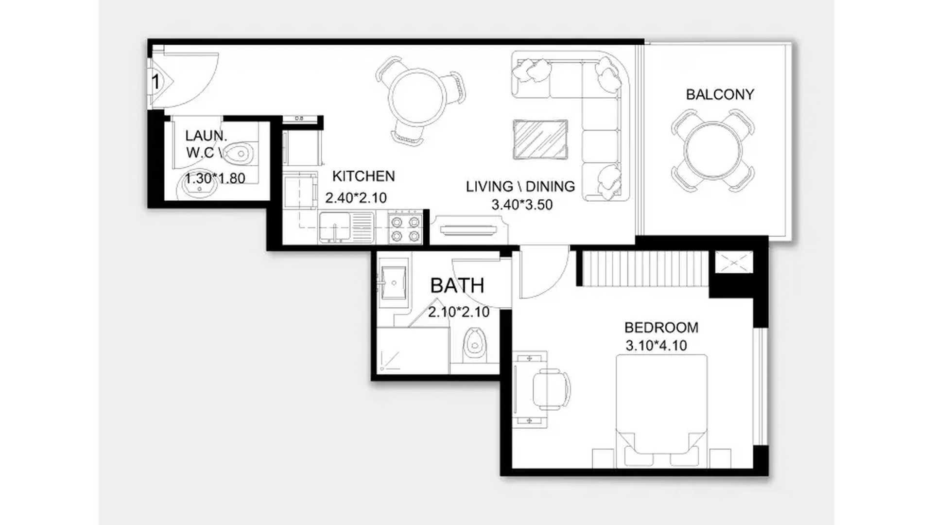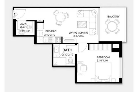 Планировка Квартиры с 1 спальней в ЖК X11 № 156133